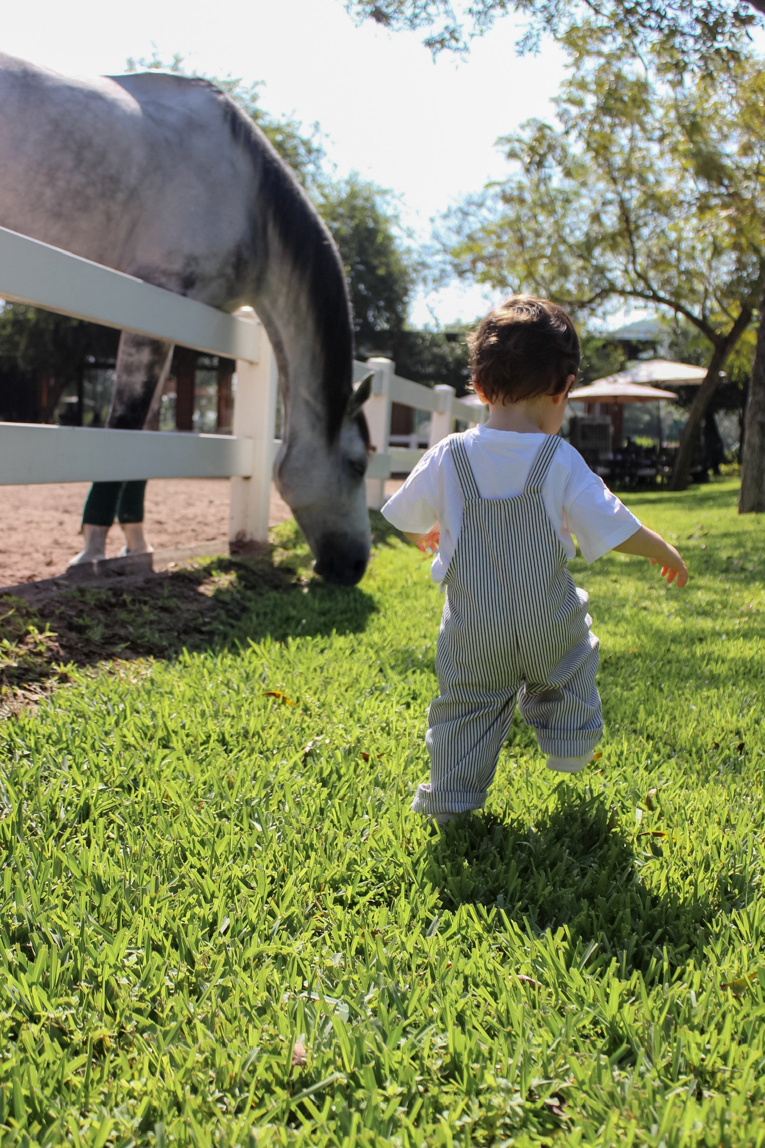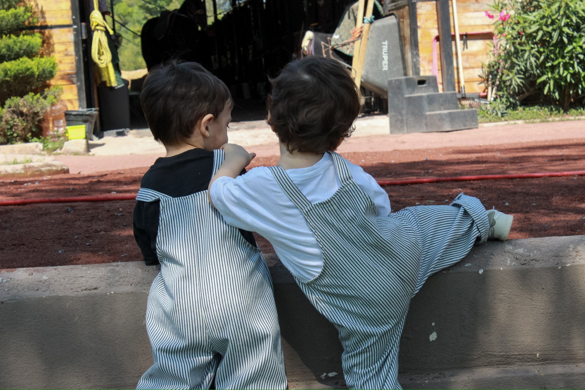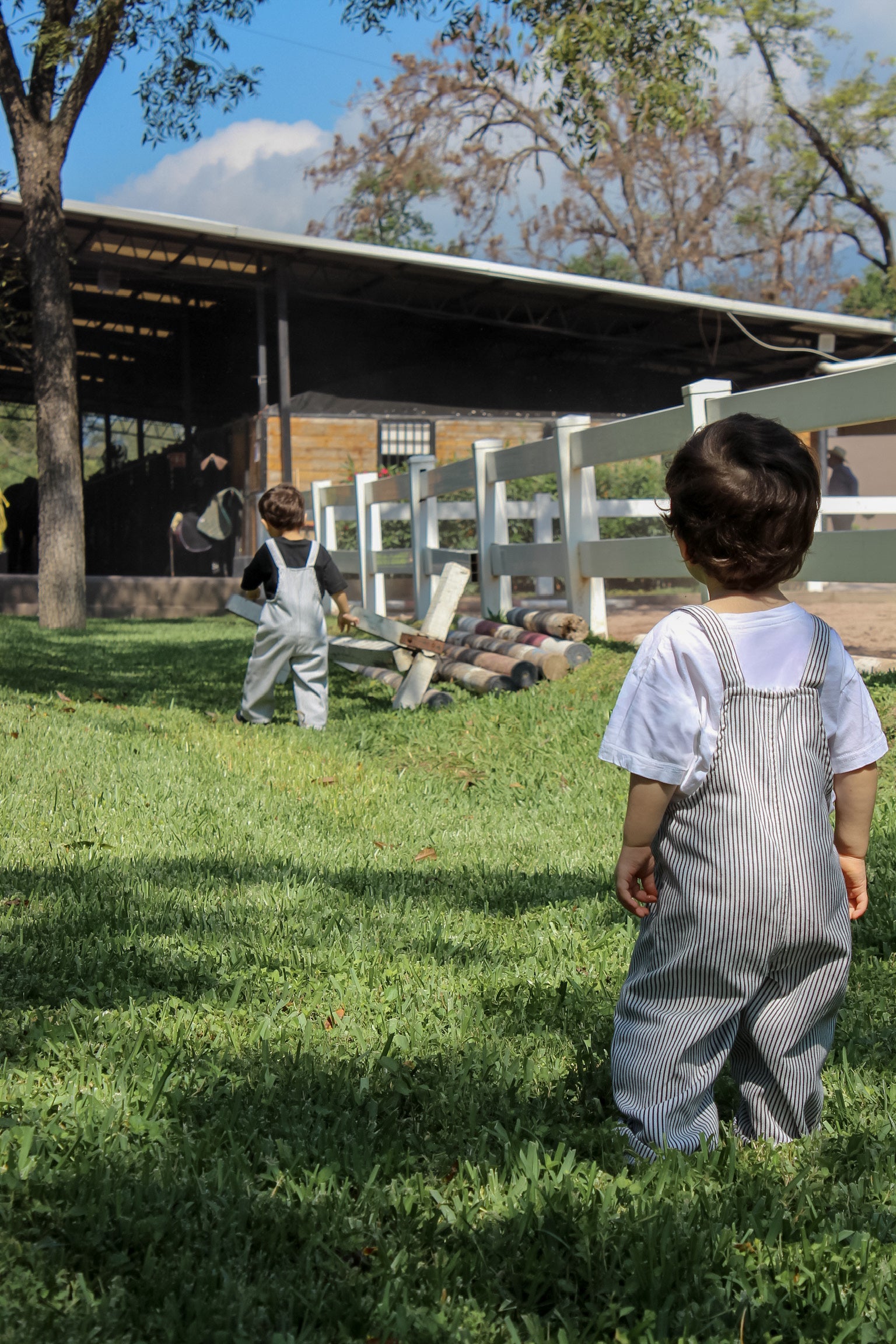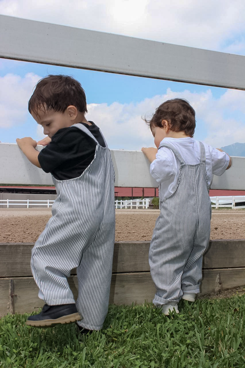 Overol de rayas con diseño divertido y práctico. Cuenta con un bolsillo frontal funcional para almacenar pequeños objetos y ajuste con botones en la parte inferior para mayor comodidad y facilidad de uso.