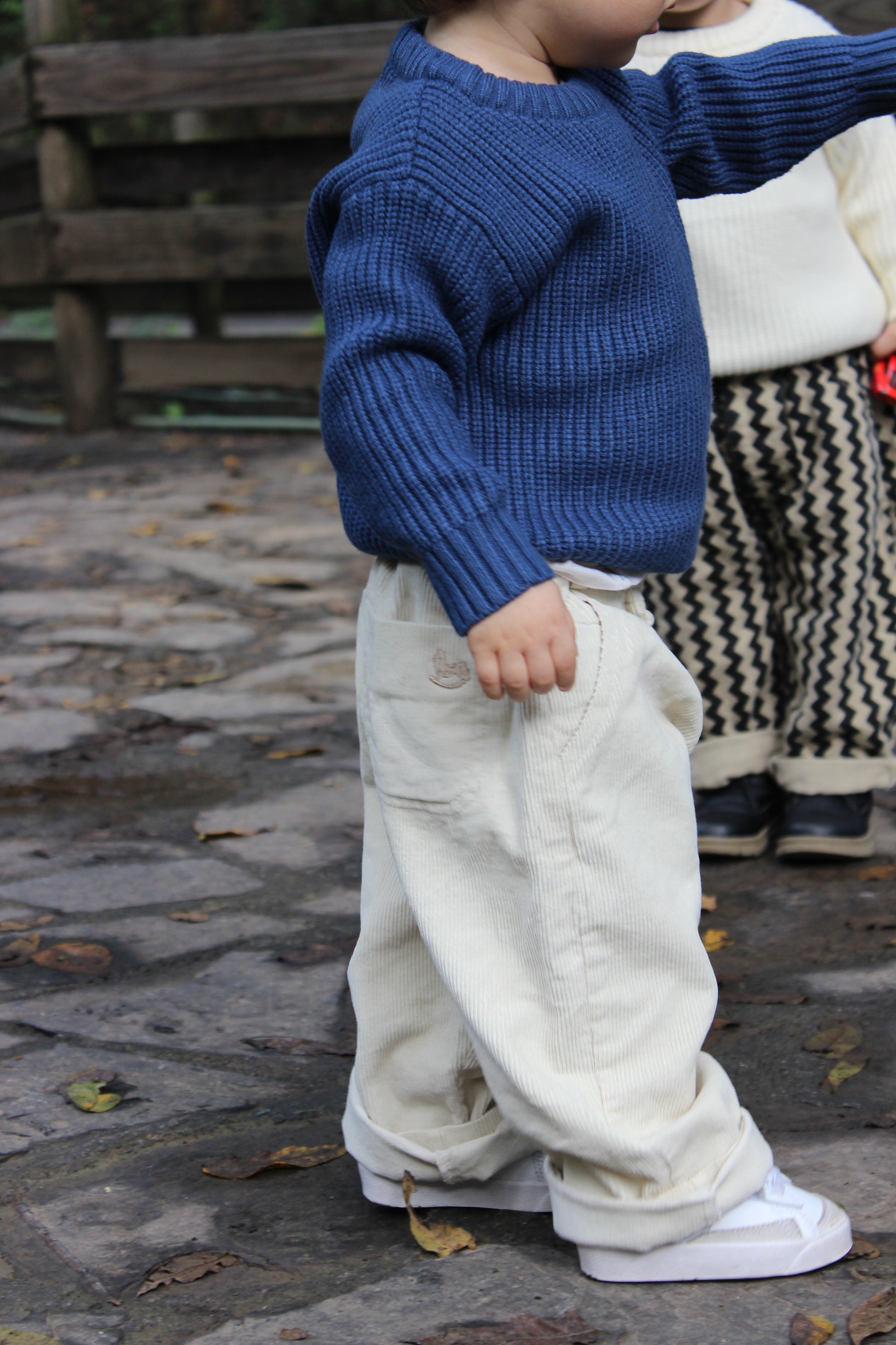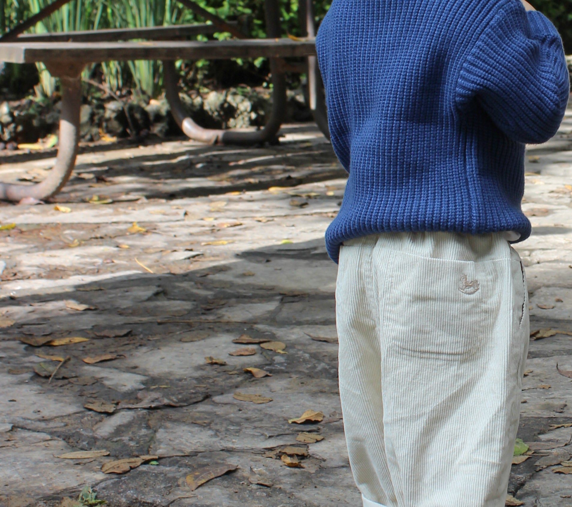 Pantalón de pana en color hueso, confeccionado en tela suave y abrigada. Su diseño clásico y versátil lo hace perfecto para combinar con cualquier prenda