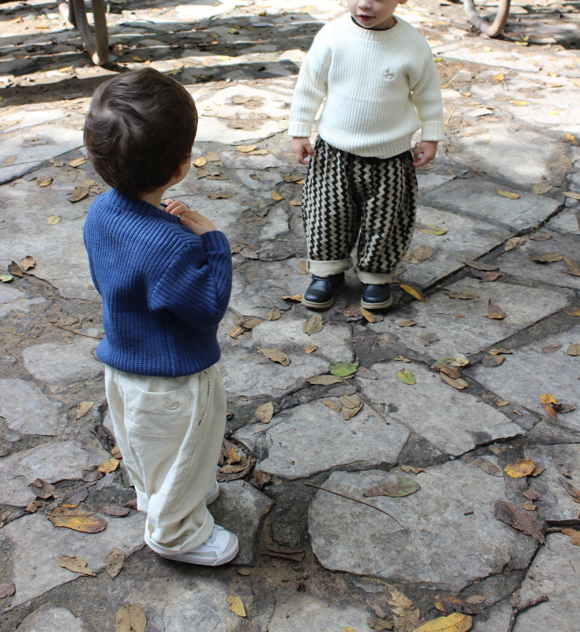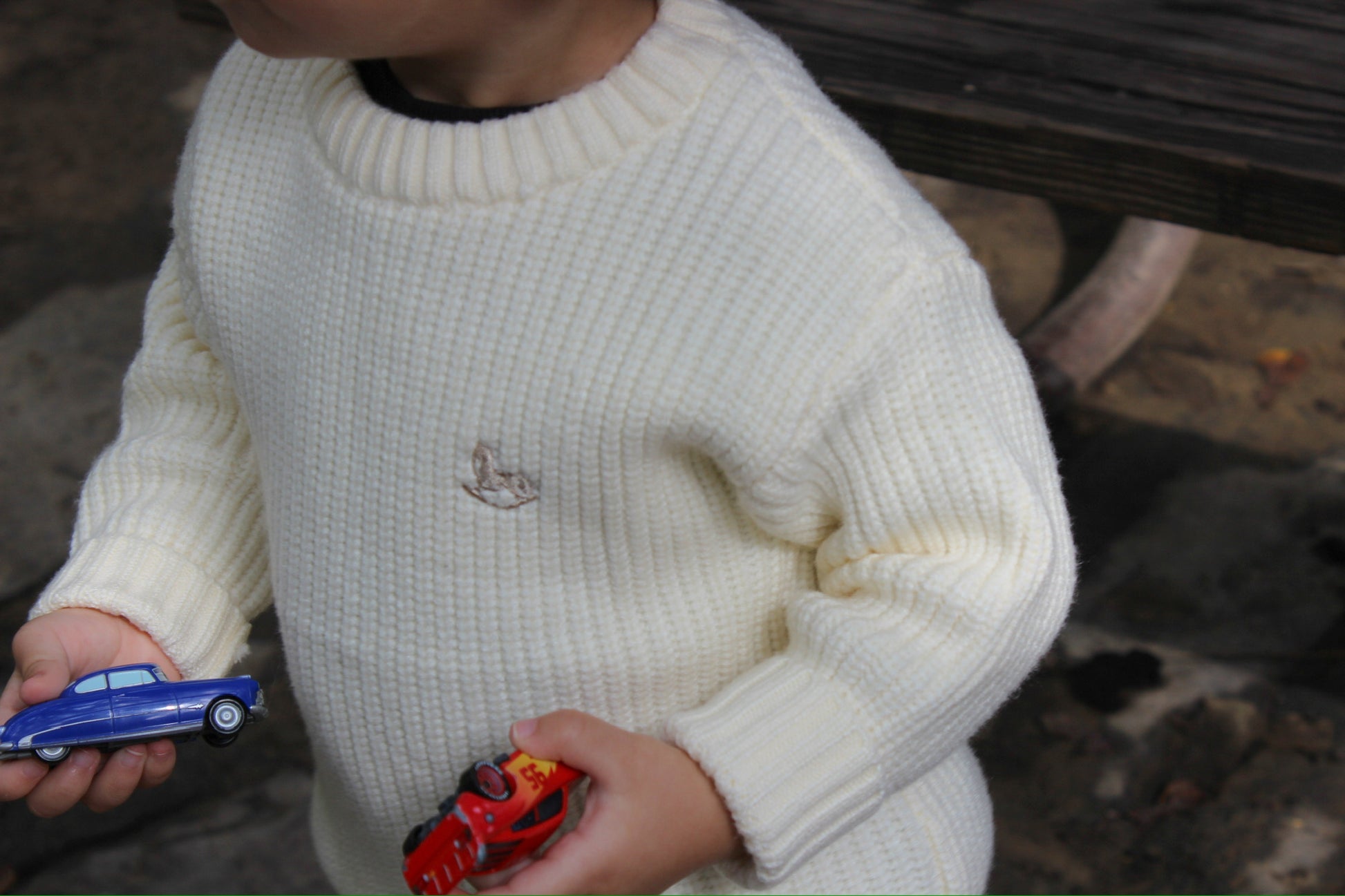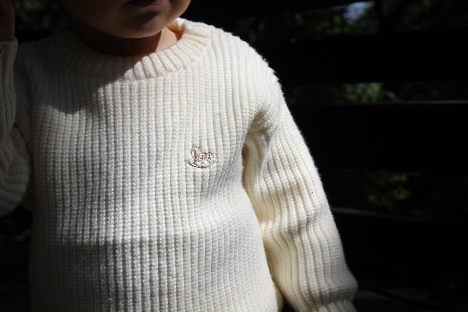 Suéter de punto clásico con logo bordado, confeccionado en tela suave y abrigada. Ideal para mantener a tu pequeño cómodo y con estilo en cualquier ocasión.